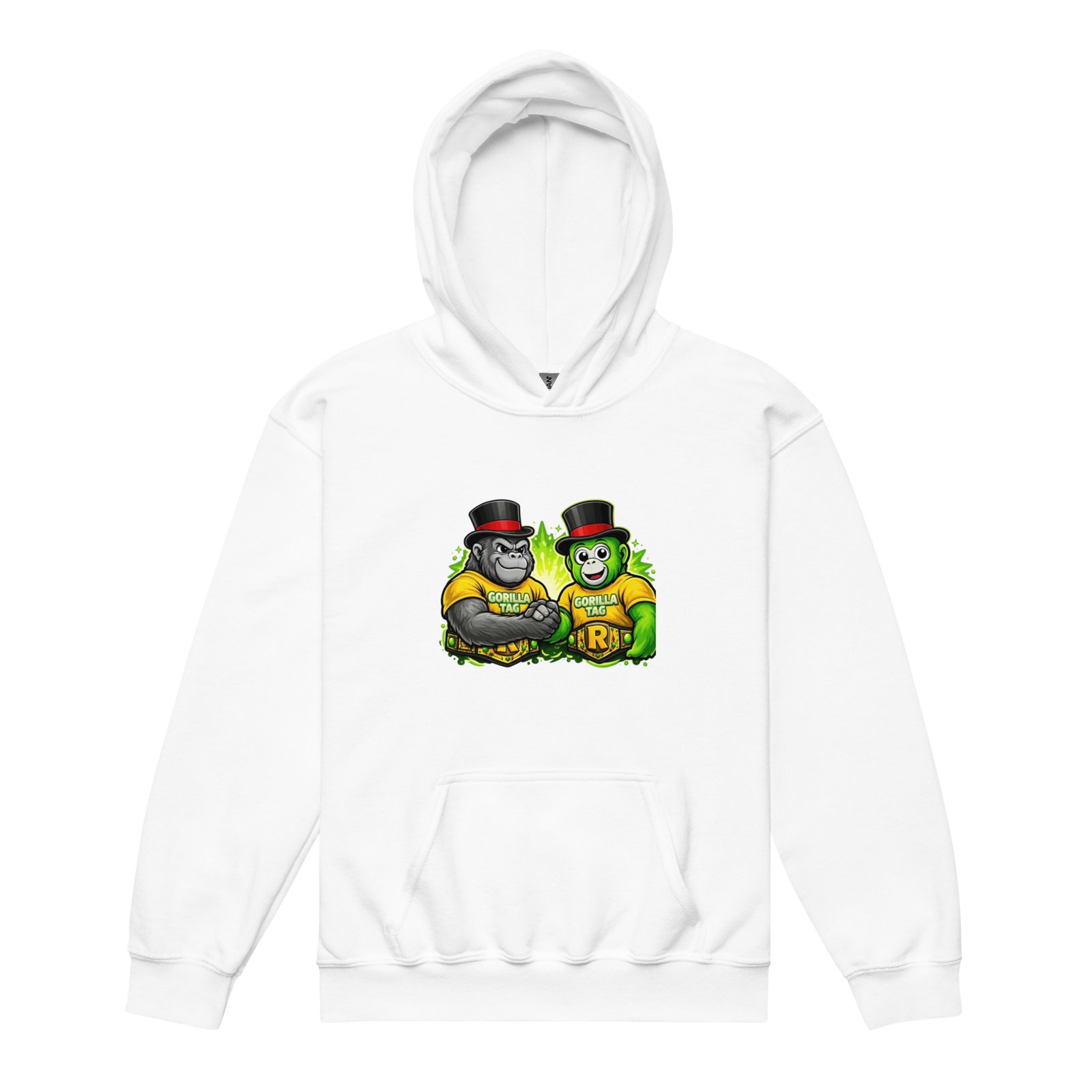 Fun gaming hoodie for kids who love VR adventure games and gorilla gaming characters. Perfect for young gamers and virtual reality fans.